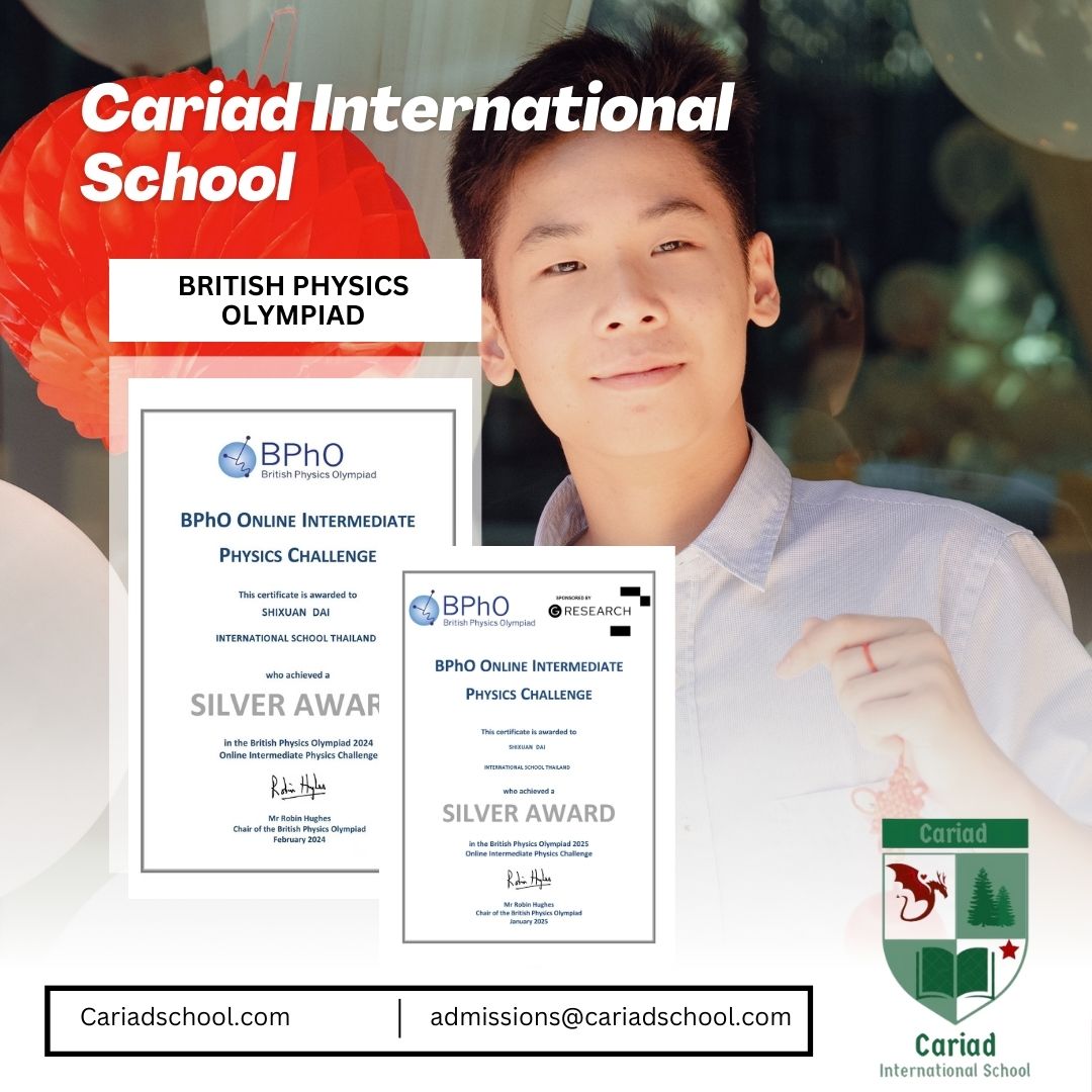 2025/03/04At 13 years old, Dennis has won the Silver Award in the British Physics Olympiad (BPhO) for the second time! 年仅13岁,Dennis第二次荣获英国物理奥林匹克竞赛(BPhO)银奖! ในวัยเพียง 13 ปี Dennis คว้ารางวัลเหรียญเงินจากการแข่งขันฟิสิกส์โอลิมปิกแห่งสหราชอาณาจักร (BPhO) เป็น